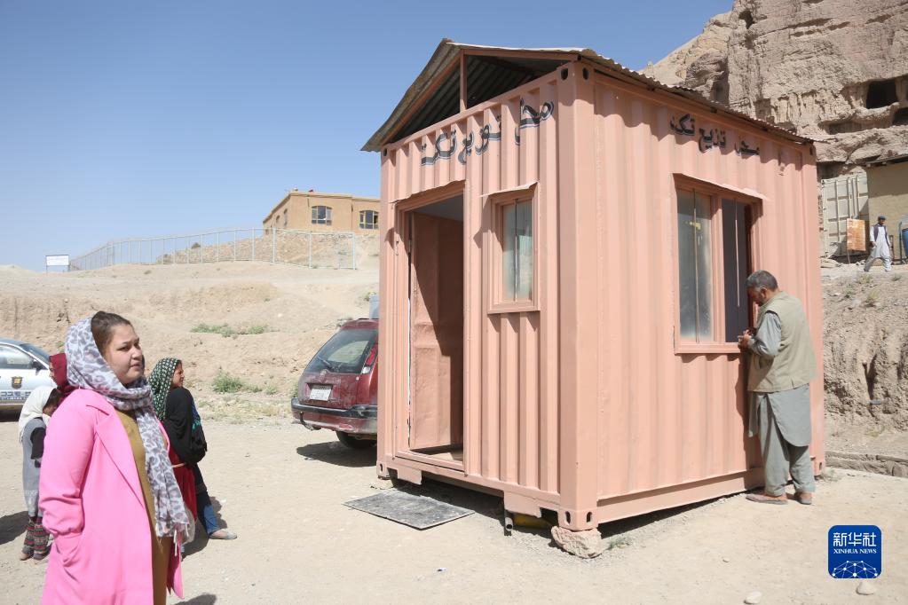 這是7月13日在阿富汗巴米揚拍攝的文物保護工作站。