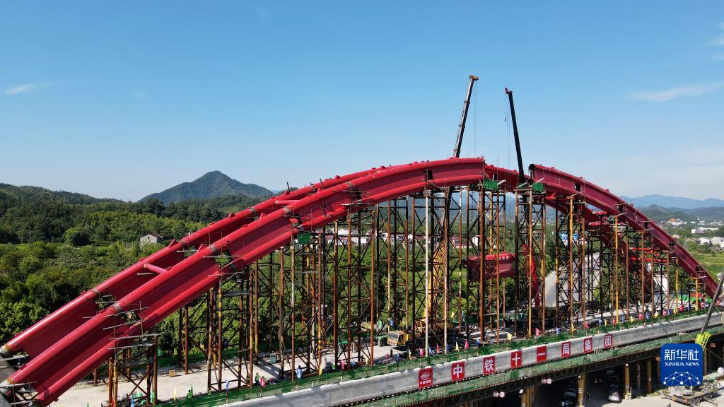 8月12日,由中鐵十一局施工的池(州)黃(山)鐵路云山特大橋144米系桿拱順利合龍,為后續工程施工提供了保障。池黃鐵路全長(cháng)約125公里,設計時(shí)速350公里,是武(漢)杭(州)快速鐵路通道的重要組成部分。