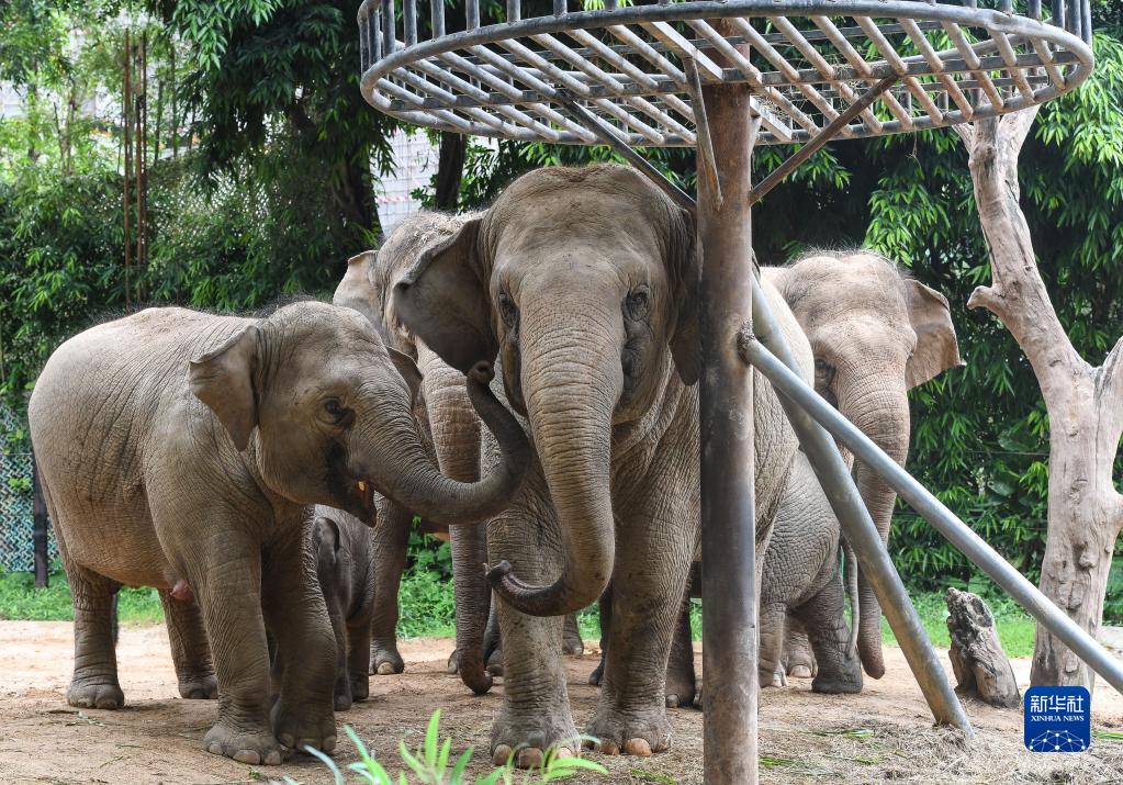 這是8月12日在廣州長(cháng)隆野生動(dòng)物世界拍攝的亞洲象家族。新華社記者 劉大偉 攝