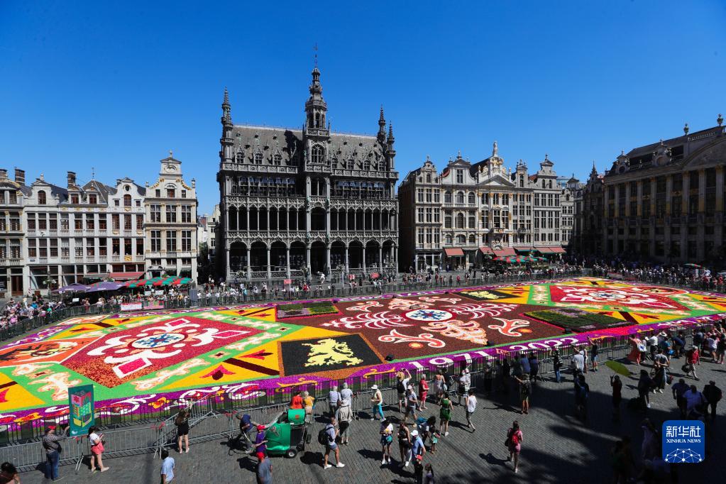 8月12日,民眾在比利時(shí)布魯塞爾大廣場(chǎng)參觀(guān)“鮮花地毯”。