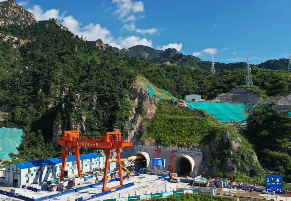 8月13日拍攝的秦皇島市撫寧抽水蓄能電站建設工地(無(wú)人機照片)。