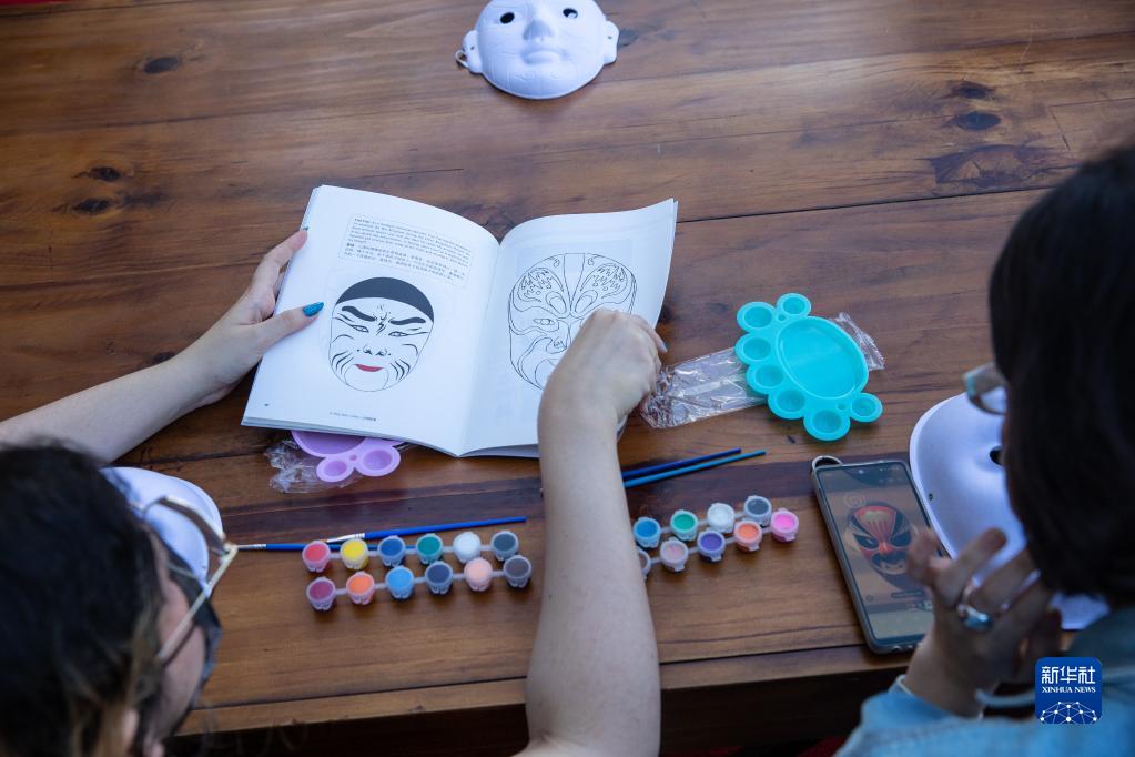 8月13日,在巴西首都巴西利亞舉辦的“中國一瞬”文化體驗周活動(dòng)上,人們參加臉譜彩繪體驗活動(dòng)。