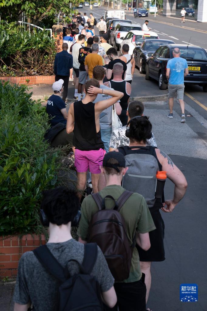 8月14日,人們在英國曼徹斯特一處猴痘疫苗接種點(diǎn)外排隊等待接種疫苗。