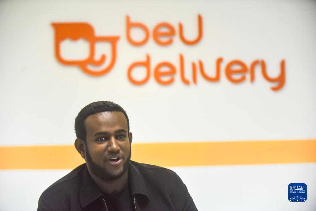 7月19日,在埃塞俄比亞首都亞的斯亞貝巴,由中國企業(yè)參與投資的外賣(mài)公司beU delivery埃塞區域經(jīng)理菲克列布·哈貝特接受新華社記者采訪(fǎng)。