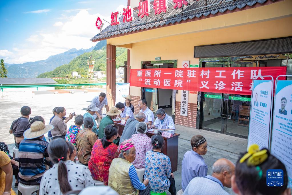 8月12日,在重慶市巫溪縣紅池壩鎮茶山村,廖正步和同事為村民義診。