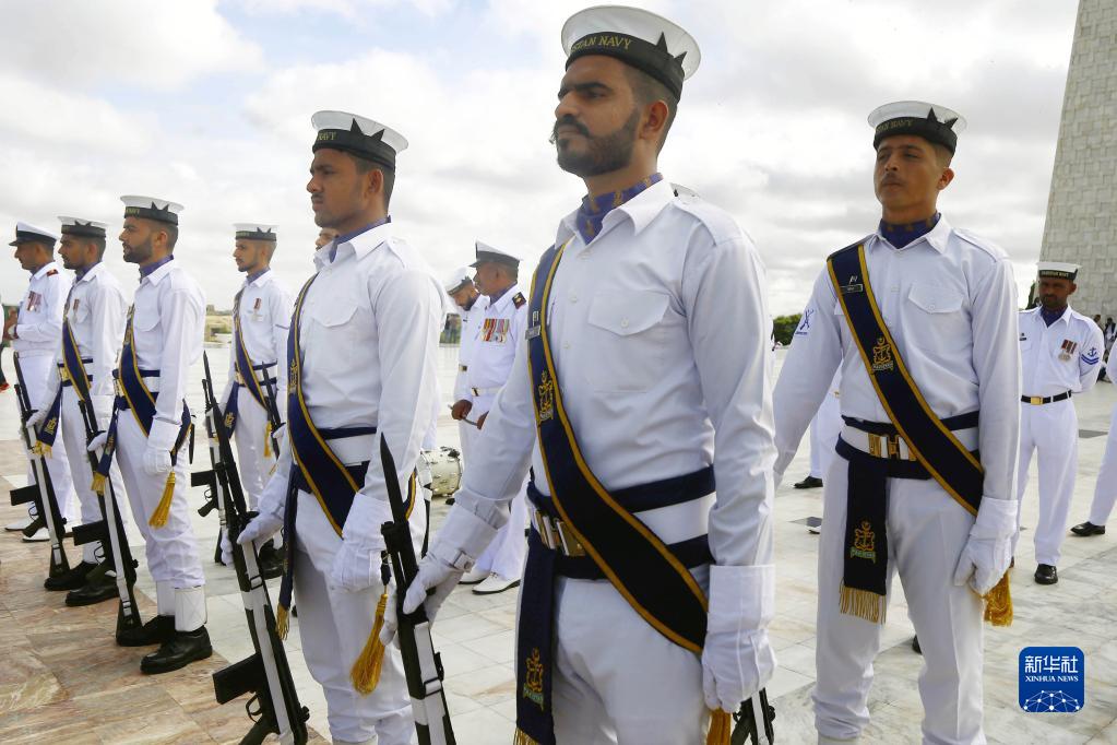 8月14日,士兵在巴基斯坦卡拉奇參加獨立日慶?;顒?dòng)。