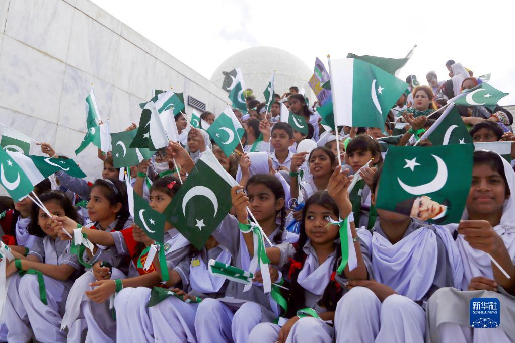 8月14日,學(xué)生在巴基斯坦卡拉奇參加獨立日慶?;顒?dòng)。