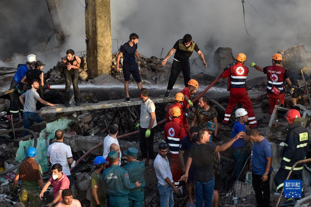 8月14日,救援人員在亞美尼亞首都埃里溫的購物中心爆炸現場(chǎng)工作。