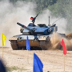 8月14日,在俄羅斯莫斯科州阿拉比諾靶場(chǎng),編號336的中國參賽隊96B坦克亮相賽場(chǎng)。