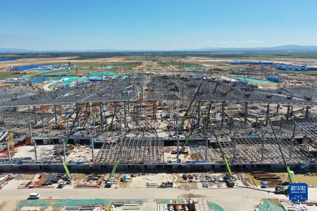 這是8月15日拍攝的呼和浩特新機場(chǎng)工程施工現場(chǎng)(無(wú)人機照片)。
