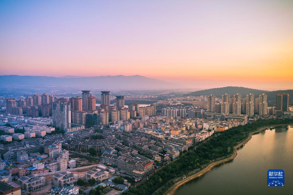 這是云南省彌勒市市區一景(無(wú)人機照片,2018年11月29日攝)。