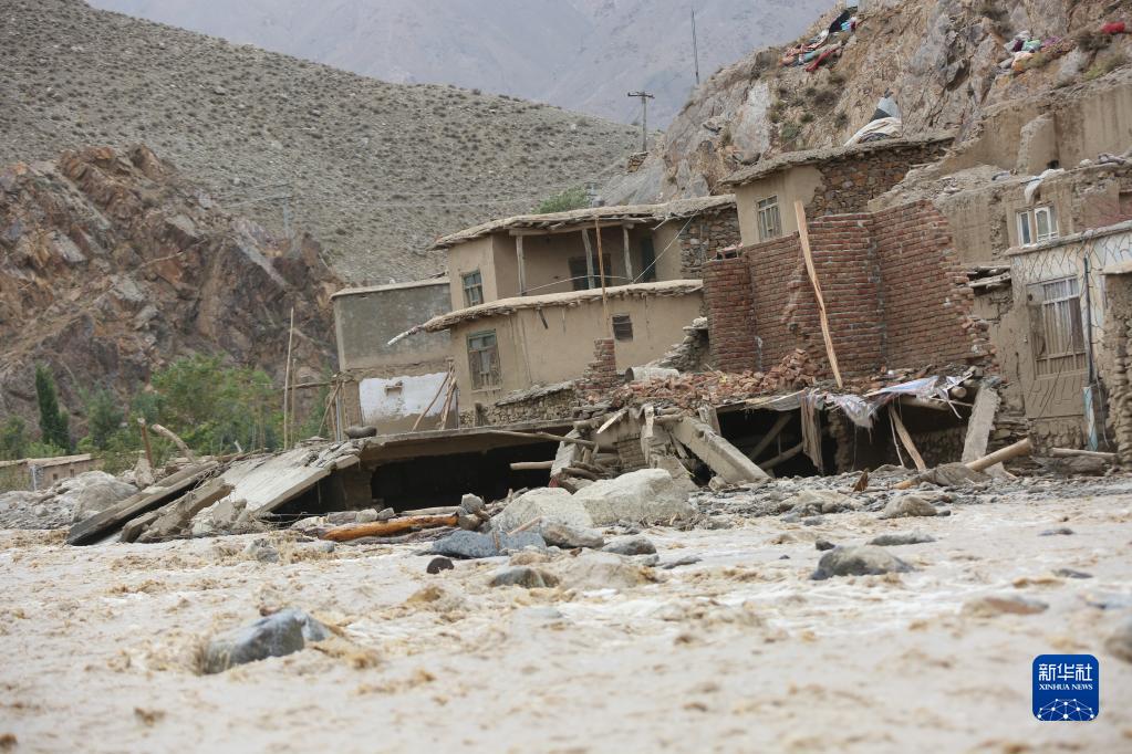 這是8月15日在阿富汗東部帕爾萬(wàn)省拍攝的被洪水損毀的房屋。