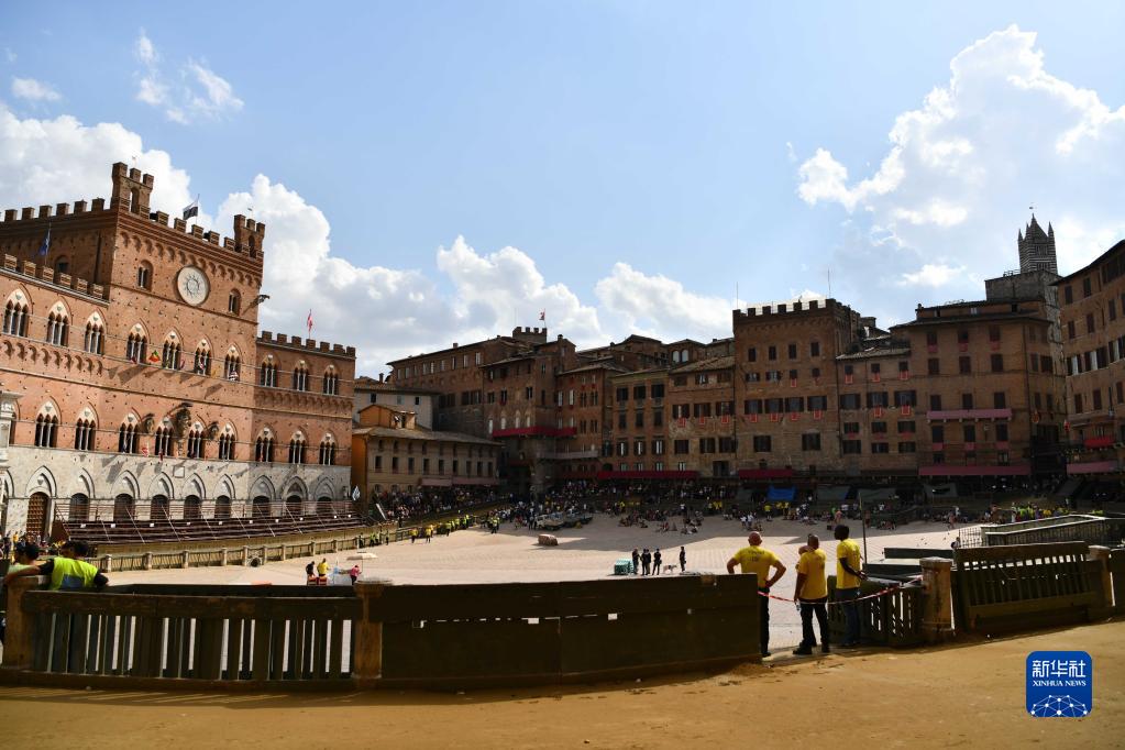 8月15日,意大利錫耶納田野廣場(chǎng)準備進(jìn)行賽馬節。