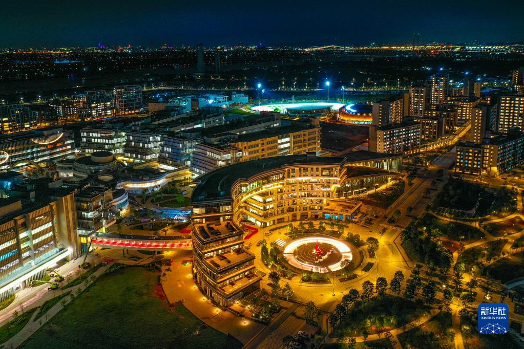 這是香港科技大學(xué)(廣州)校園夜景(8月15日攝,無(wú)人機照片)。