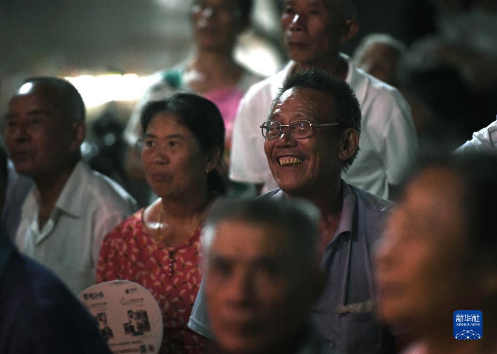 在江西省廣昌縣塘坊鎮大株村,村民在觀(guān)看木偶戲演出(8月10日攝)。