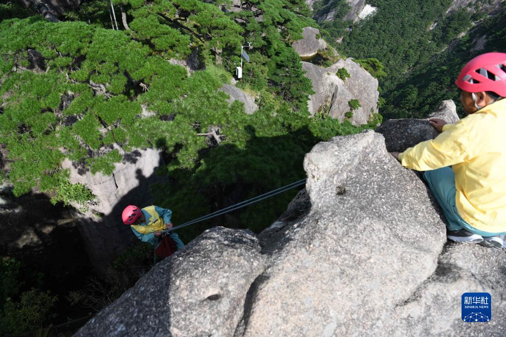 云海、奇石、迎客松……黃山上的這些風(fēng)景令許多游客印象深刻。在游玩時(shí),大家也許還會(huì )遇見(jiàn)這樣一些人:他們或拿著(zhù)設備獨自守護在迎客松旁,或在峭壁上攀爬清理垃圾……他們日復一日地守護著(zhù)美麗的黃山。