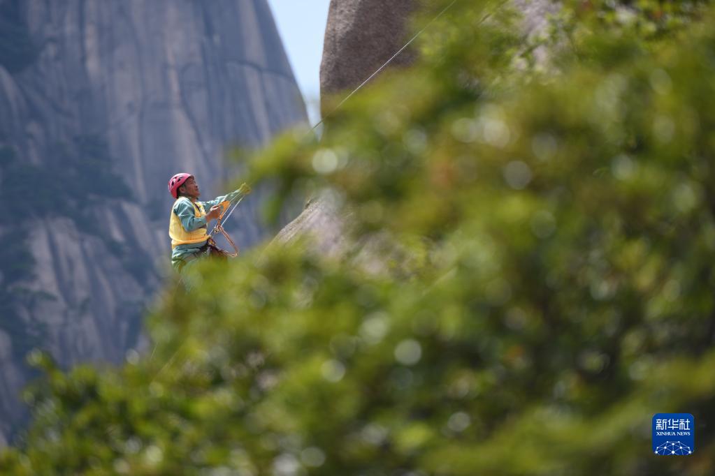 云海、奇石、迎客松……黃山上的這些風(fēng)景令許多游客印象深刻。在游玩時(shí),大家也許還會(huì )遇見(jiàn)這樣一些人:他們或拿著(zhù)設備獨自守護在迎客松旁,或在峭壁上攀爬清理垃圾……他們日復一日地守護著(zhù)美麗的黃山。