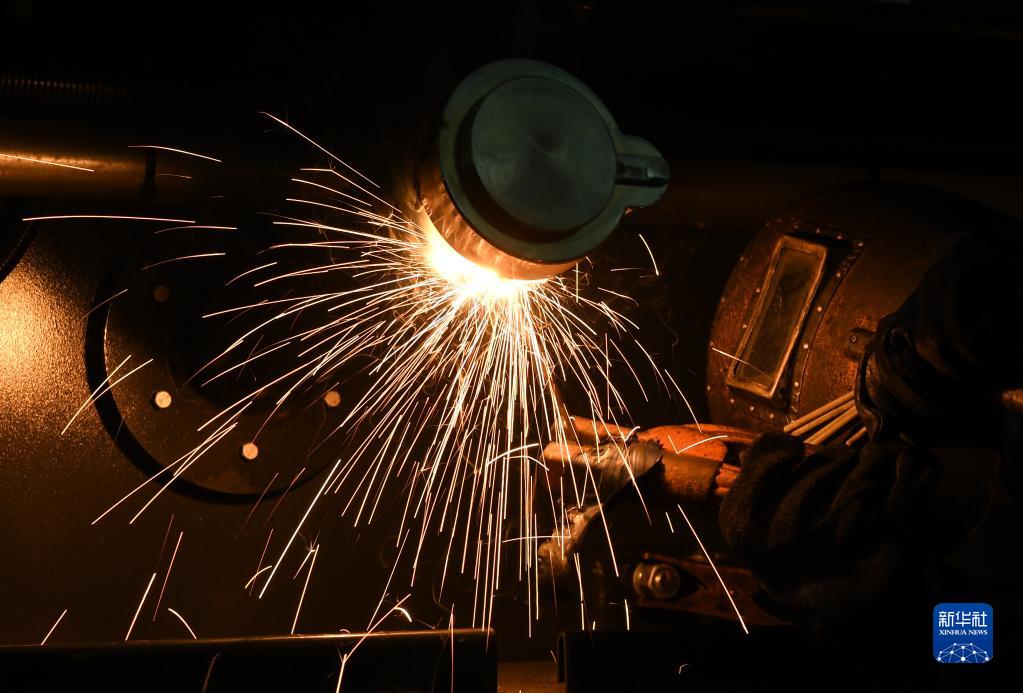 8月16日,廣州機務(wù)段職工在對機車(chē)部件進(jìn)行焊接作業(yè)。