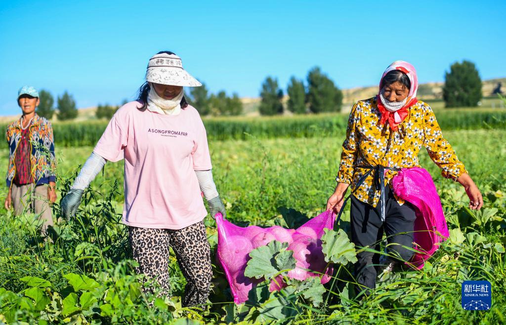 8月15日,種植戶(hù)在田間收獲貝貝南瓜。