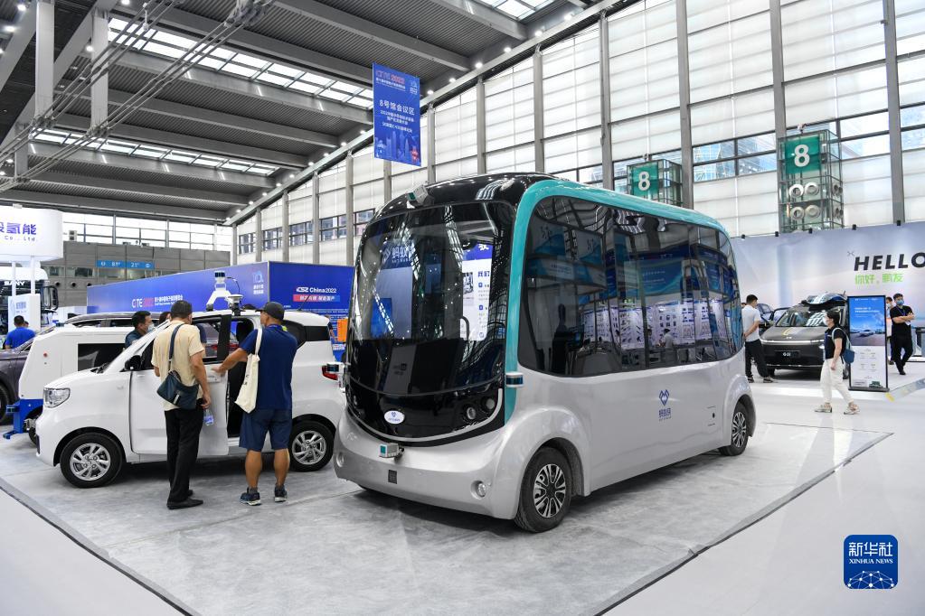 8月16日,觀(guān)眾在第十屆中國電子信息博覽會(huì )上了解自動(dòng)駕駛汽車(chē)。