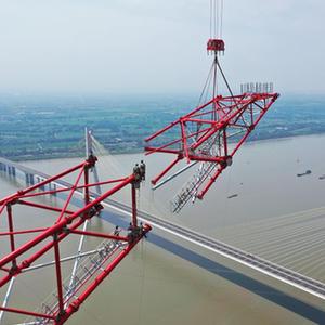 當日,位于安徽省銅陵市樅陽(yáng)縣的長(cháng)江跨越塔北塔封頂,標志著(zhù)“西電東送”重點(diǎn)工程白鶴灘至浙江±800千伏特高壓直流輸電工程安徽段長(cháng)江跨越塔全部組立完成。