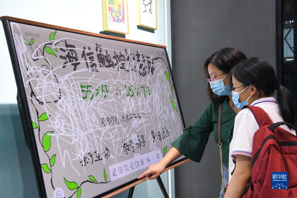 8月17日,在第十屆中國電子信息博覽會(huì )上,觀(guān)眾在體驗海信觸控智慧屏。
