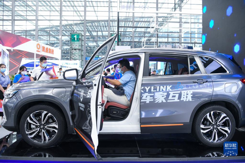 在第十屆中國電子信息博覽會(huì )上,觀(guān)眾體驗創(chuàng )維智能汽車(chē)(8月16日攝)。