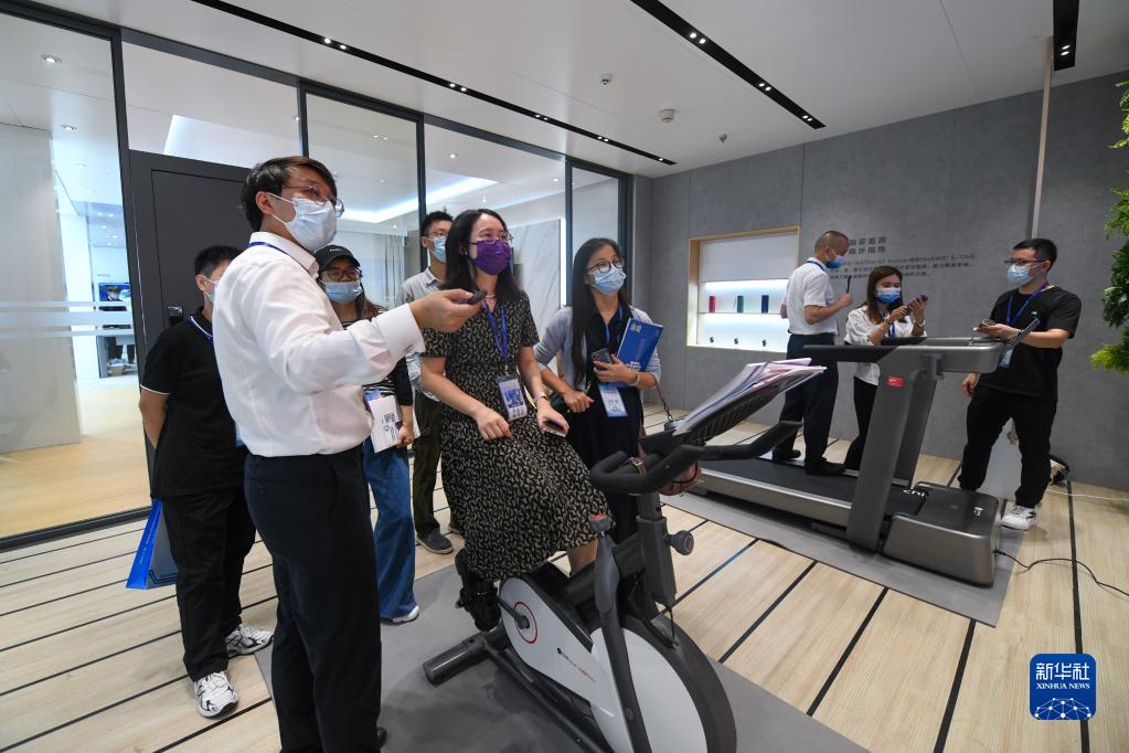在第十屆中國電子信息博覽會(huì )上,觀(guān)眾在體驗華為智能健身設備(8月16日攝)。