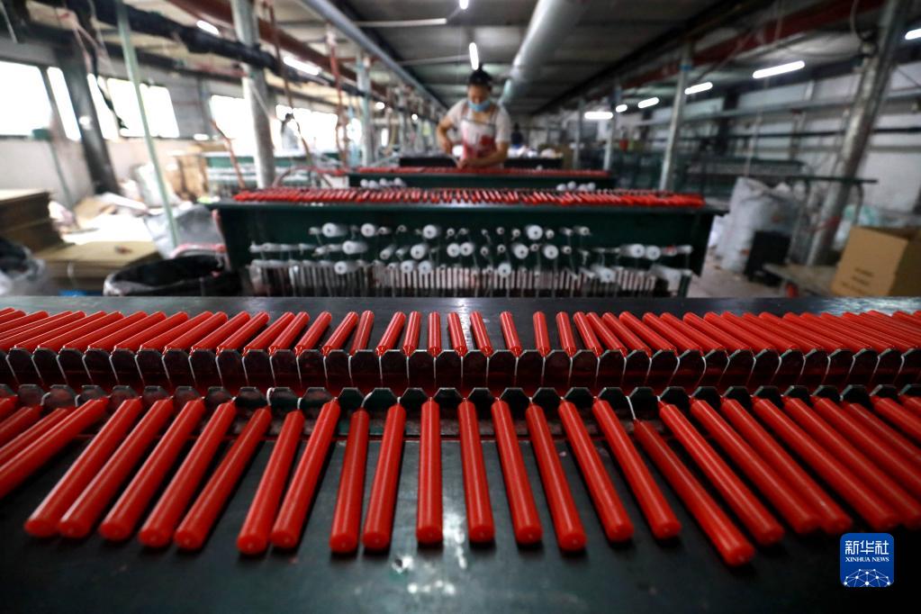 8月17日,工人在河北省石家莊市行唐縣一家蠟燭外貿生產(chǎn)企業(yè)的生產(chǎn)線(xiàn)上工作。