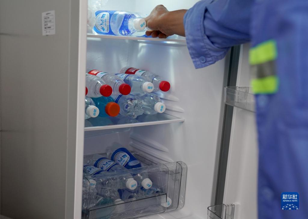 愛(ài)心驛站的冰箱內有免費的飲用水和鹽汽水(8月16日攝)。