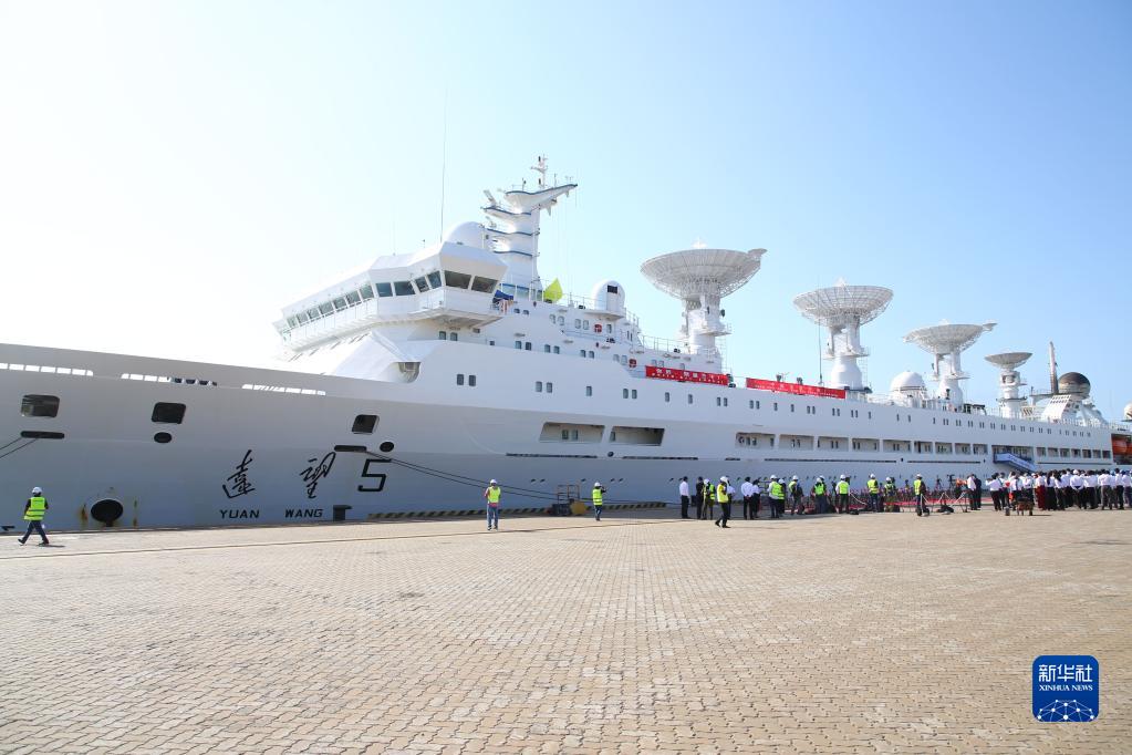 中國遠望5號船16日??克估锾m卡南部漢班托塔港,進(jìn)行物資補給。中國駐斯大使戚振宏和斯政府官員、中資機構代表等在碼頭迎接。