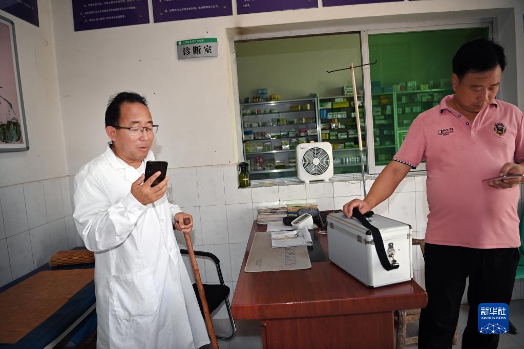 8月17日,村醫牛薛武(右)在村衛生室接到患者的電話(huà),立即動(dòng)身前往。