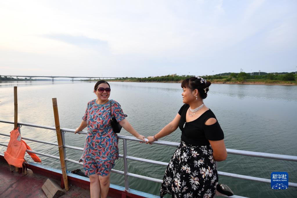 8月17日,結束一天的工作后,顏新艷(左)搭乘輪渡回家。
