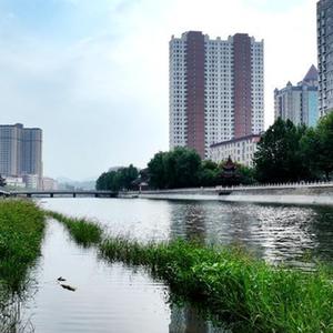 洛南縣的縣河穿城而過(guò),治理后的河道流淌著(zhù)清澈的河水(8月18日攝,無(wú)人機照片)。