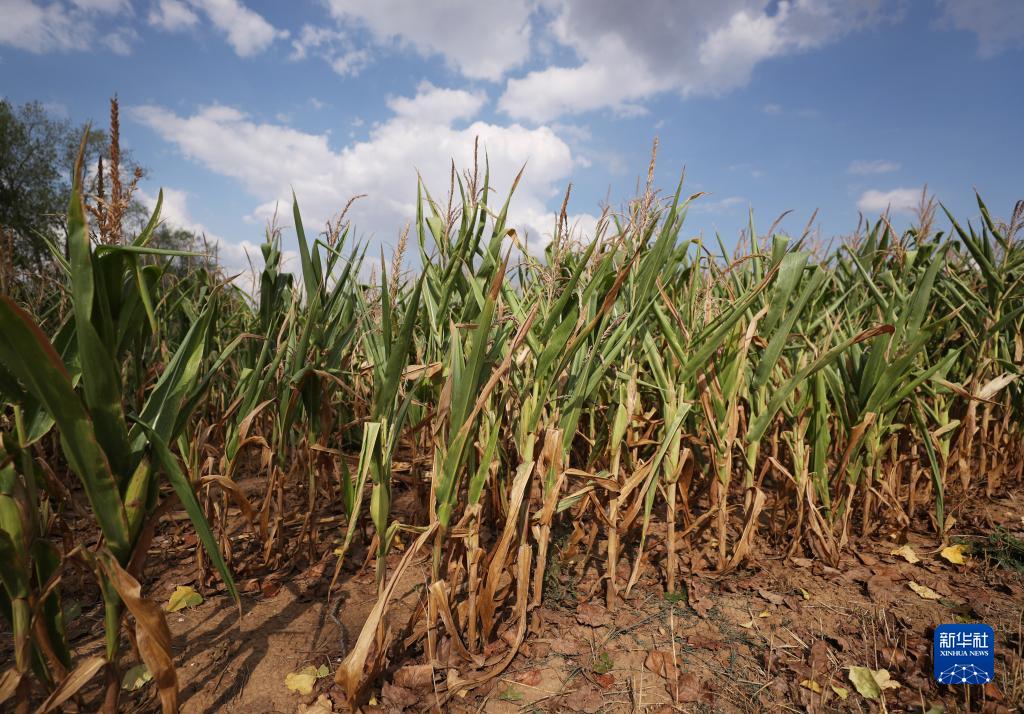 這是8月18日在法國巴黎西北約30公里處的皮伊塞-蓬圖瓦茲拍攝的受旱情影響的玉米田。