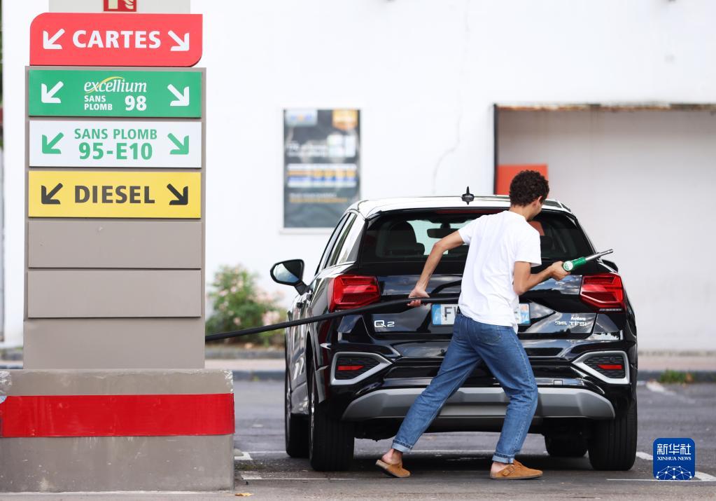 8月18日, 人們在法國巴黎郊區的一處加油站加油。