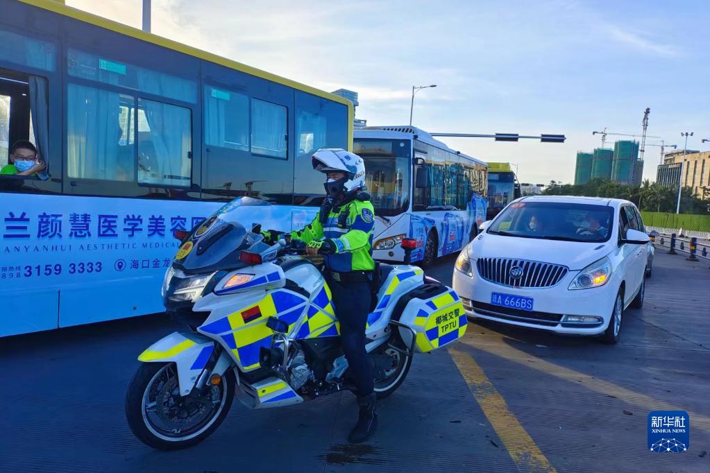 8月16日,??诮痪姆?wù)專(zhuān)員護送滯留旅客和車(chē)輛從健康管理驛站閉環(huán)至港口。