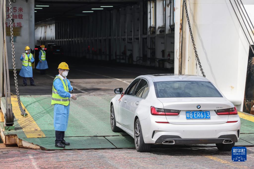 8月16日,??谛潞8鄣姆?wù)專(zhuān)員引導滯留旅客的自駕車(chē)輛登船。