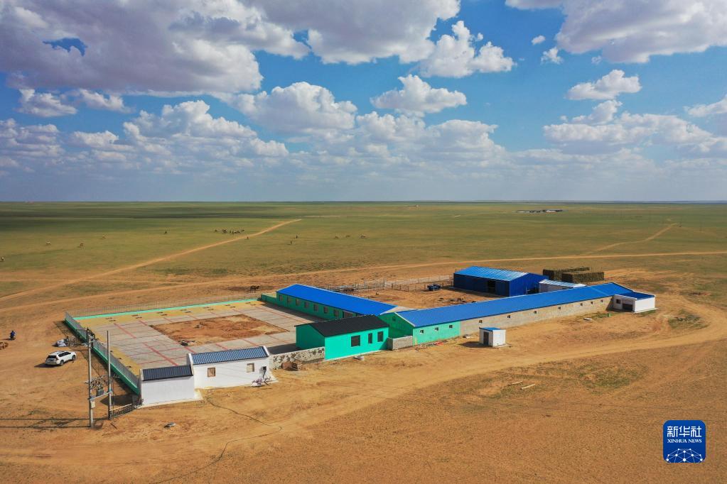 這是8月18日拍攝的蘇尼特右旗雙峰駝繁育養殖基地(無(wú)人機照片)。