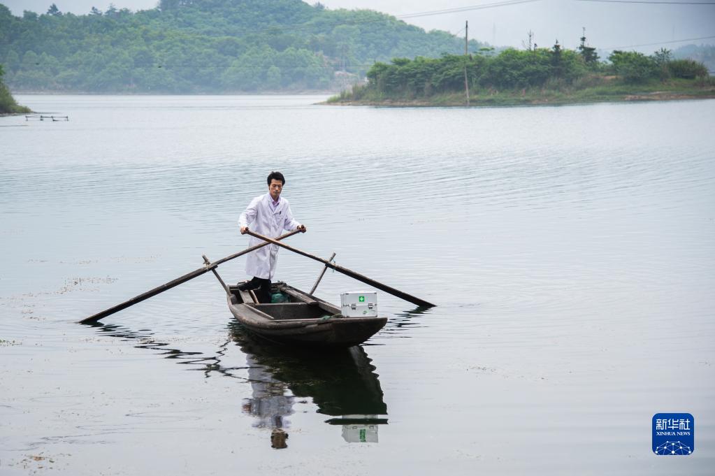 2022年5月13日,尹傳波獨自一人劃船出診。