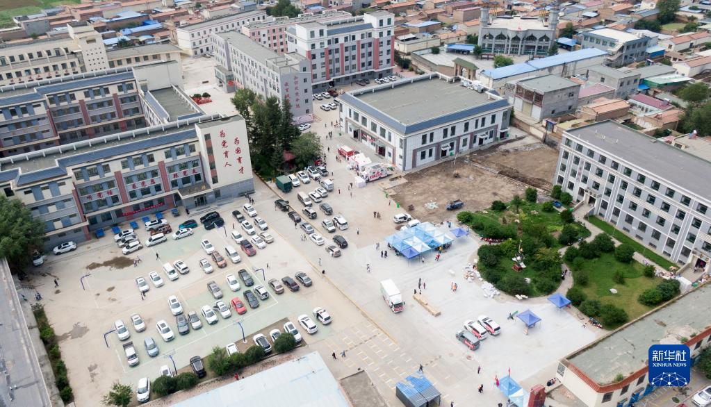 8月19日拍攝的大通一中臨時(shí)安置點(diǎn)(無(wú)人機照片)。