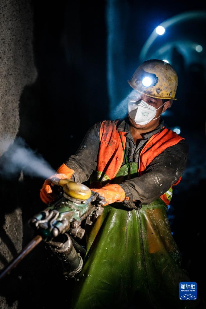 8月19日,工人在華麗高速營(yíng)盤(pán)山隧道內作業(yè)。