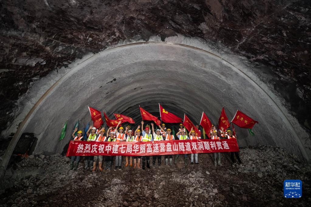 8月19日,建設者在華麗高速營(yíng)盤(pán)山隧道內慶祝貫通。