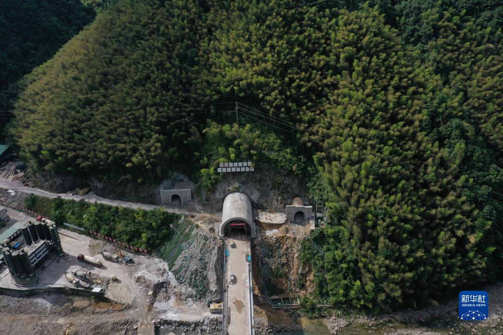 這是杭溫鐵路戶(hù)口隧道口(8月19日攝,無(wú)人機照片)。隧道進(jìn)口山勢陡峭,隧道地質(zhì)條件復雜,施工難度大。