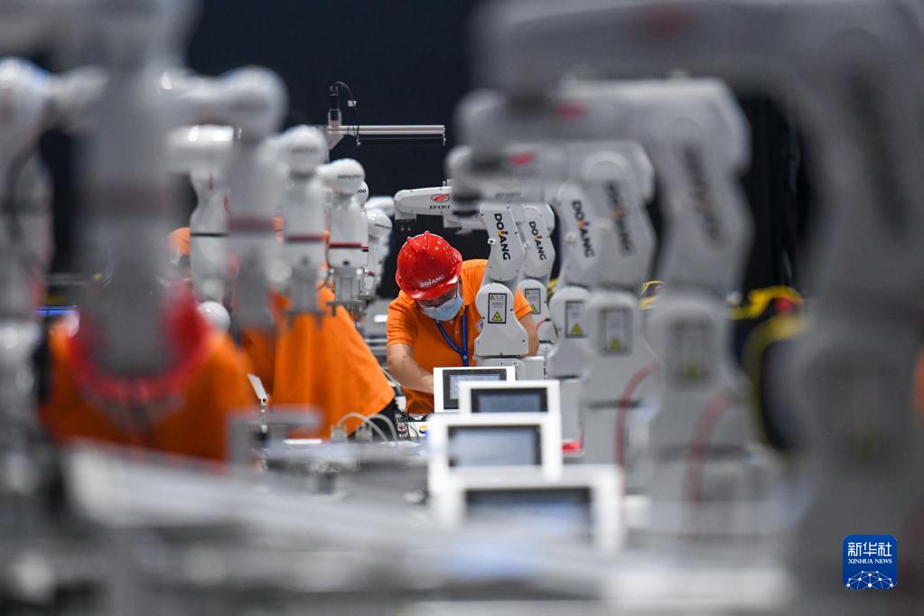 8月19日,選手在工業(yè)機器人技術(shù)應用項目比賽中操作。