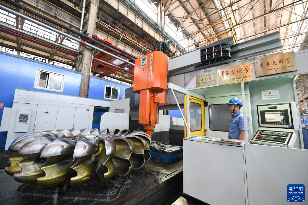8月20日,在哈電集團哈爾濱電機廠(chǎng)有限責任公司的車(chē)間,工人在生產(chǎn)作業(yè)。新華社記者 王松 攝