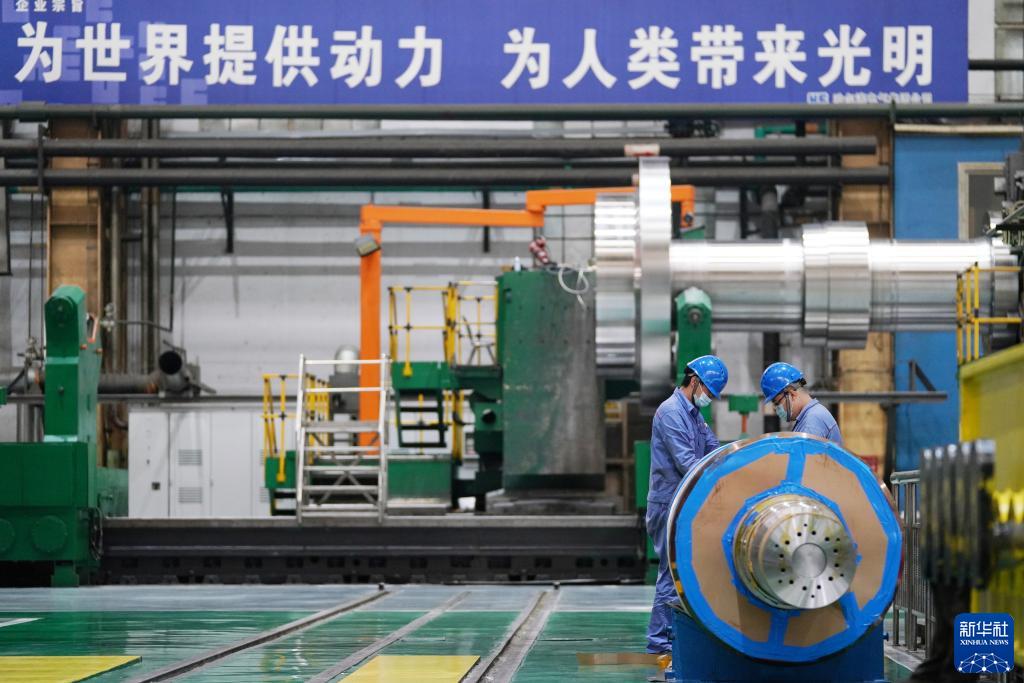 8月19日,在哈電集團哈爾濱電機廠(chǎng)有限責任公司的車(chē)間,工人在生產(chǎn)作業(yè)。新華社記者 王建威 攝