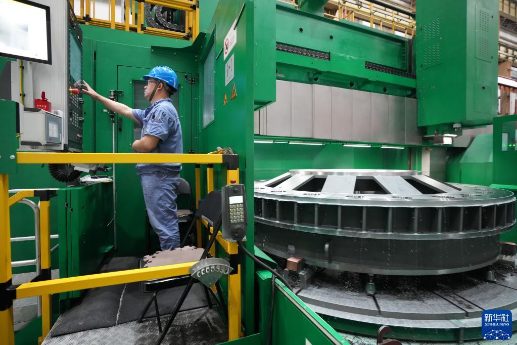 8月19日,在哈電集團哈爾濱電機廠(chǎng)有限責任公司的車(chē)間,工人在生產(chǎn)作業(yè)。新華社記者 王建威 攝