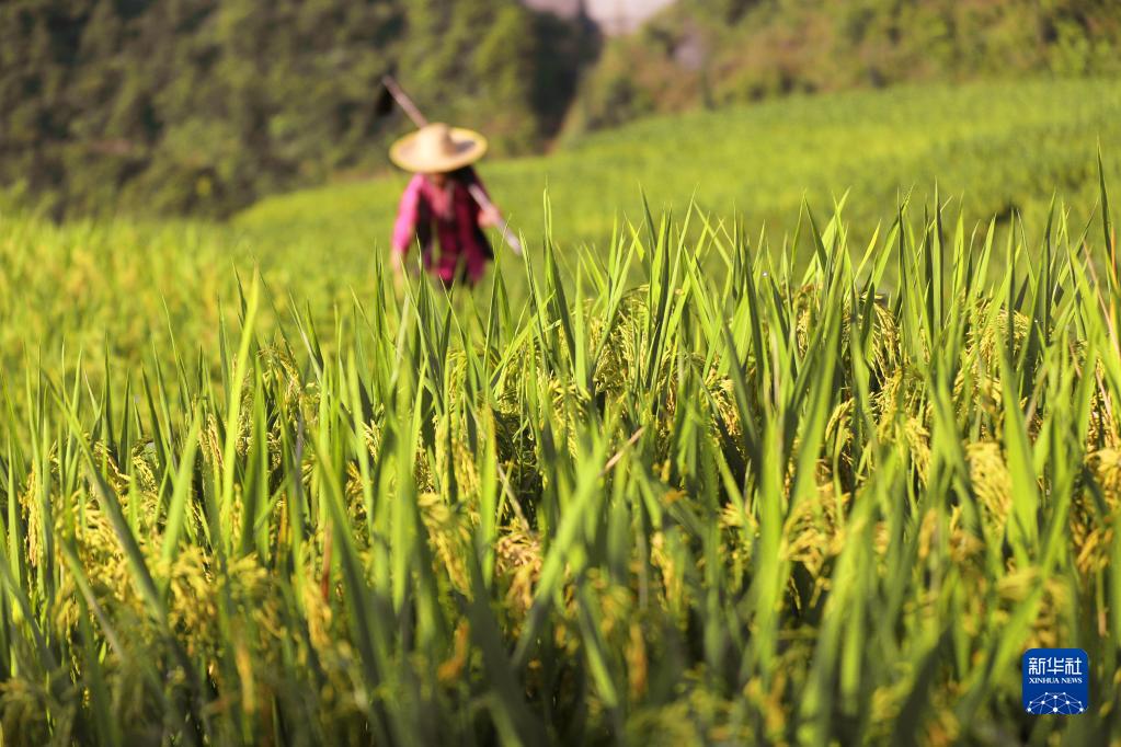時(shí)下,貴州省丹寨縣境內稻田里的水稻由綠變黃,谷穗因飽滿(mǎn)而彎了腰,微風(fēng)吹來(lái),稻浪翻滾,一片豐收在望的景象。
