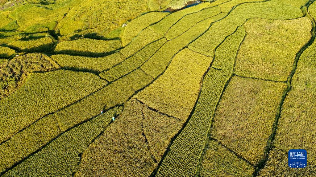 時(shí)下,貴州省丹寨縣境內稻田里的水稻由綠變黃,谷穗因飽滿(mǎn)而彎了腰,微風(fēng)吹來(lái),稻浪翻滾,一片豐收在望的景象。